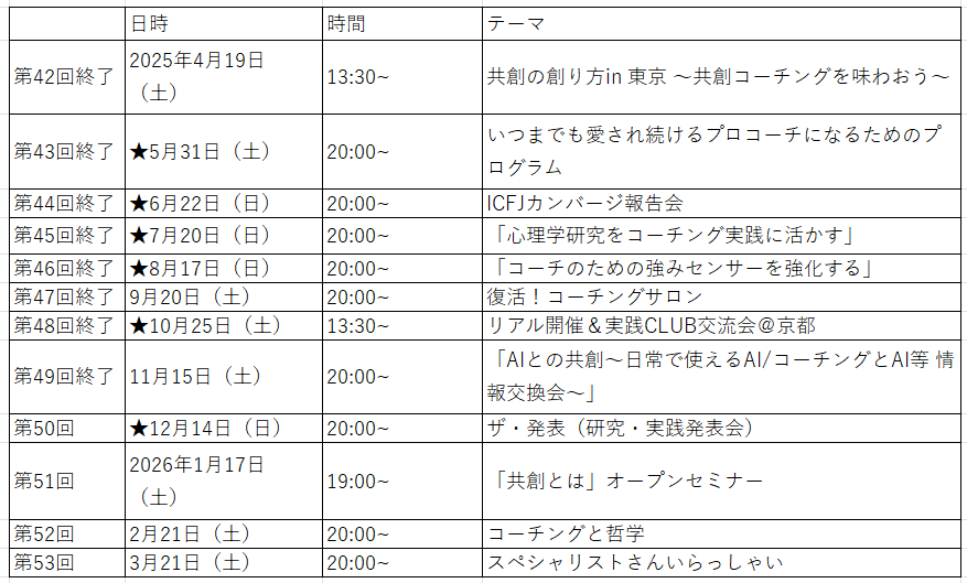 <2025年度実践CLUBの予定>