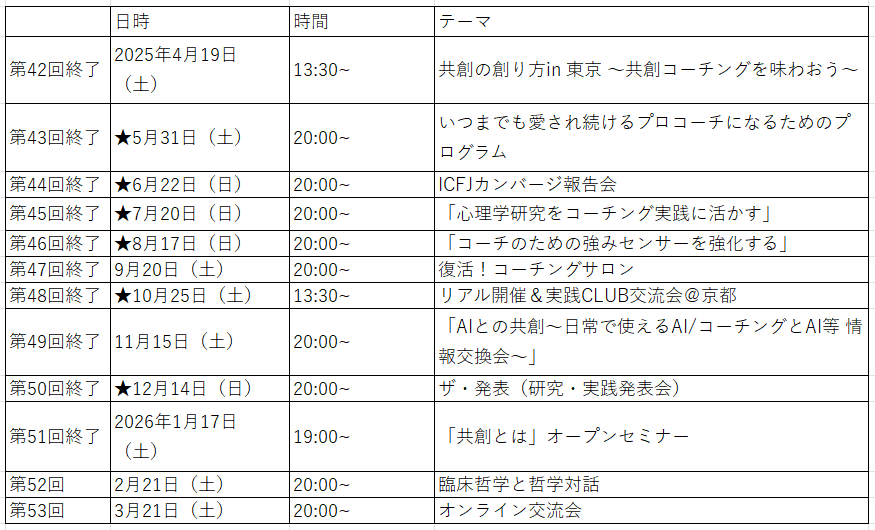 この度、2025年度の実践CLUBの予定をまとめてお知らせできる事になりました。