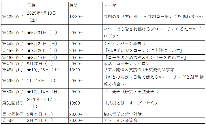 この度、2025年度の実践CLUBの予定をまとめてお知らせできる事になりました。